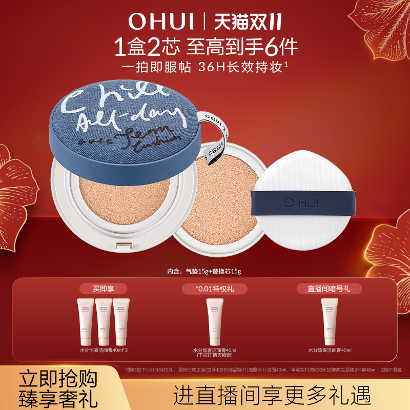 OHUI欧蕙小羊皮气垫套装遮瑕保湿BB霜持久不易脱妆粉底液官方正品