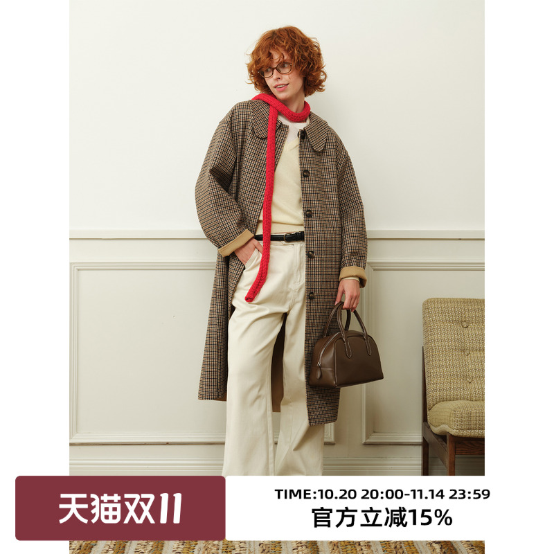 omont蛋挞家复古两面穿千鸟格毛呢外套2025秋冬宽松中长风衣大衣