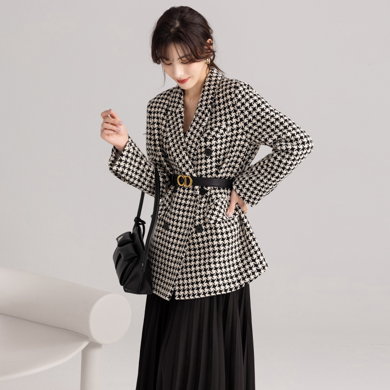 BLANK LABEL 极简高级羊毛羊绒混纺千鸟格毛呢西装外套女秋冬大衣