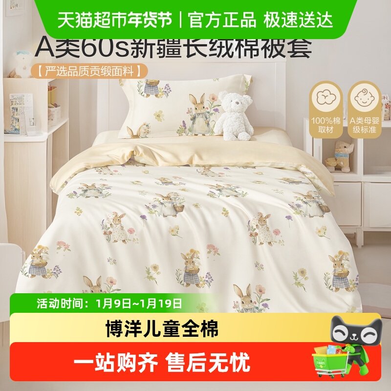 婴儿被套纯棉a类60支婴儿床被罩儿童全棉被套单件120x150cm幼儿园