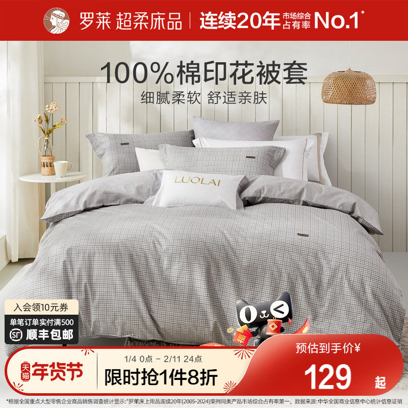 罗莱家纺纯棉全棉学生宿舍单人被套被罩单件100%棉拆件双人家用