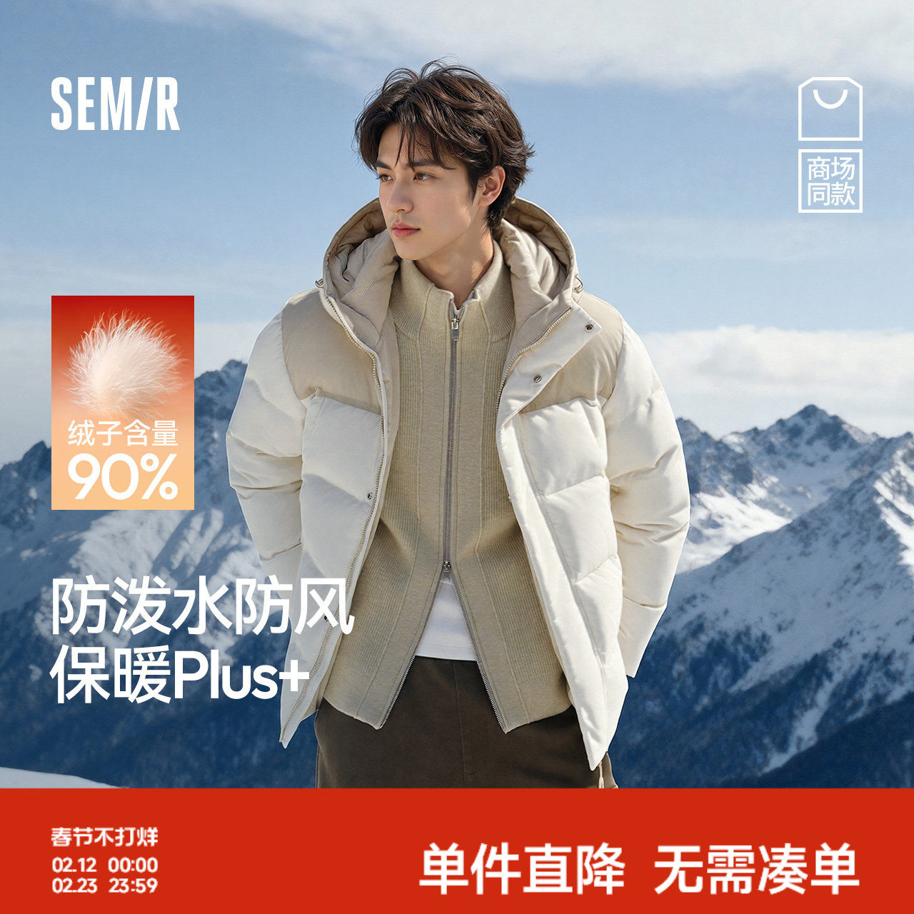 商场同款森马羽绒服男冬90绒子防泼水防风25新款情侣外套正肩加厚