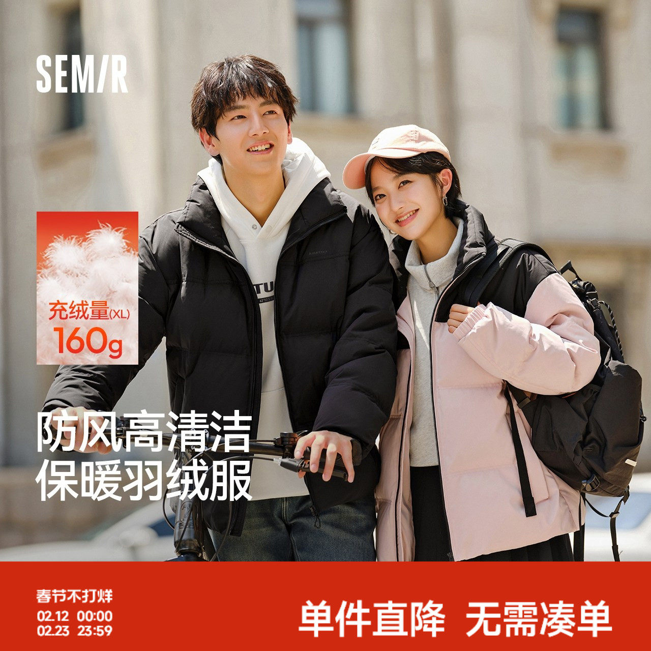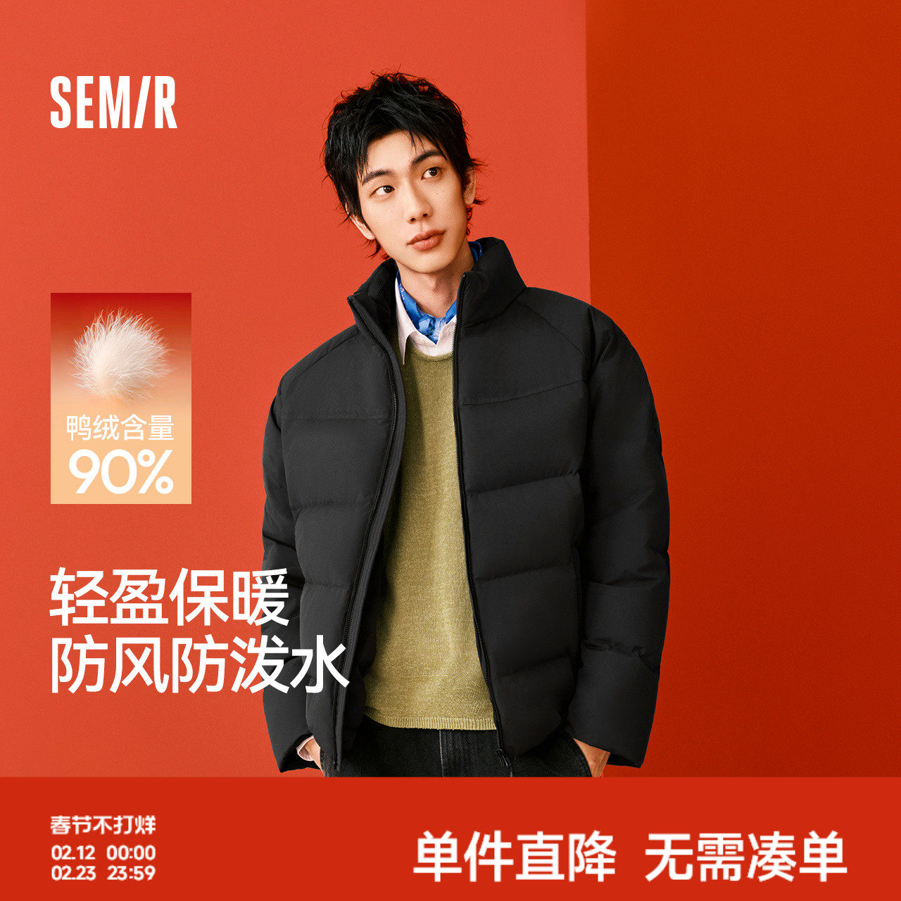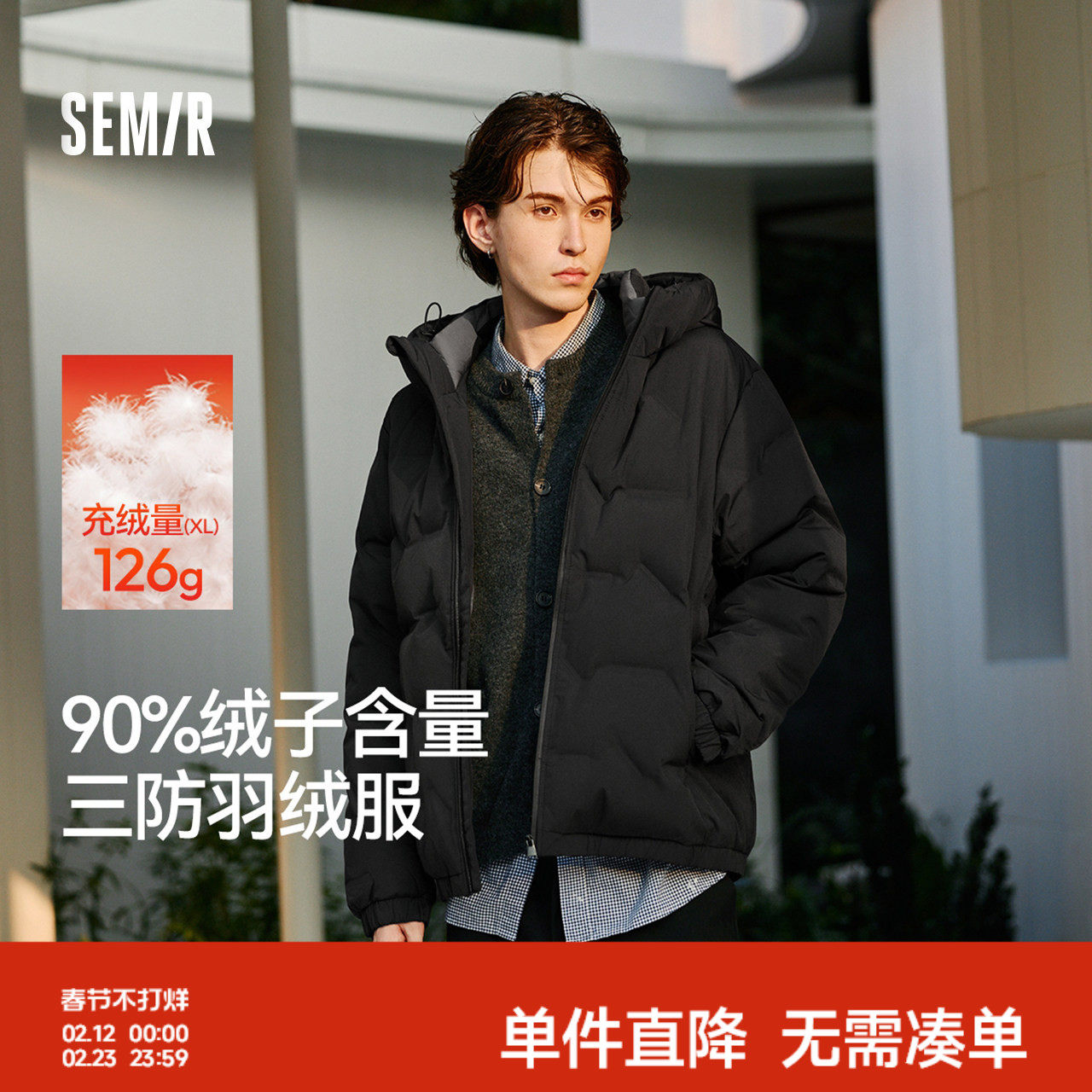 轻松羽绒|森马羽绒服男防泼水防风正肩外套情侣冬装连帽上衣青年