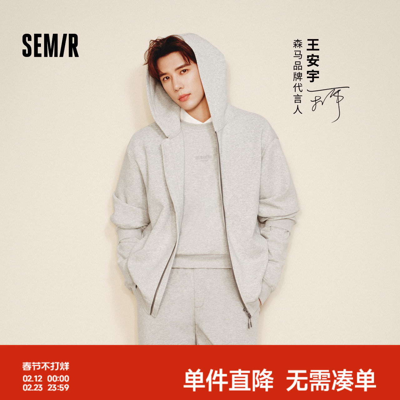 王安宇商场同款森马连帽外套2025秋新款森柔棉宽松卫衣男女同款