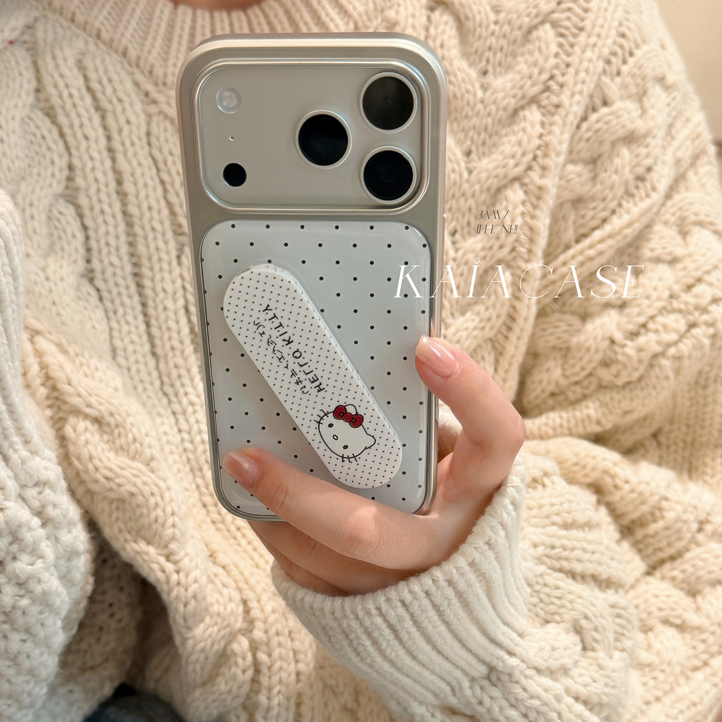 kaia韩风ins黑波点哈喽kt凯蒂猫适用苹果17promax手机壳iphone16pro新款15女14pro带支架15pro全包防摔手机套