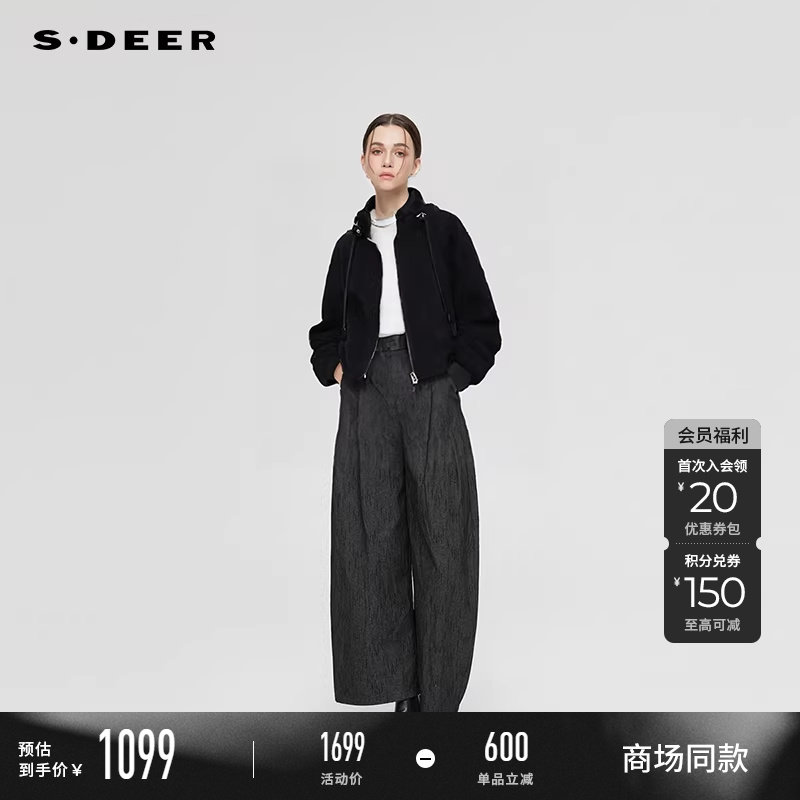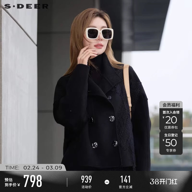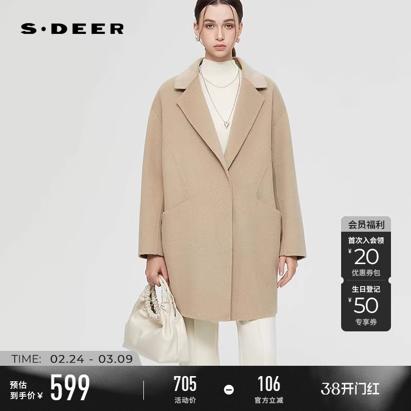 sdeer圣迪奥女装25年冬OL风西装领双面呢茧型大衣S25462501