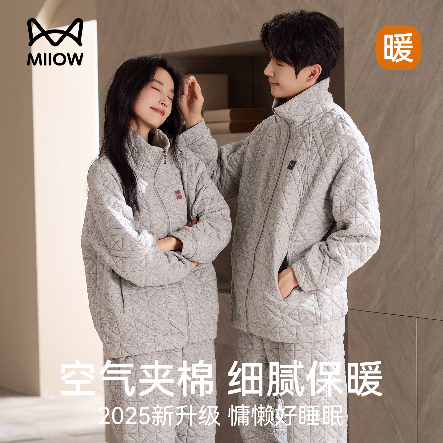 猫人纯棉夹棉情侣睡衣冬季加厚2025新款超火空气棉女士家居服套装