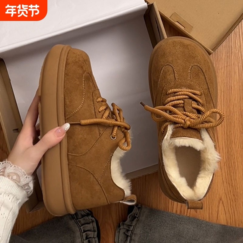 加厚雪地棉鞋女2025年秋冬新款保暖羊羔毛美拉德加绒外穿休闲板鞋