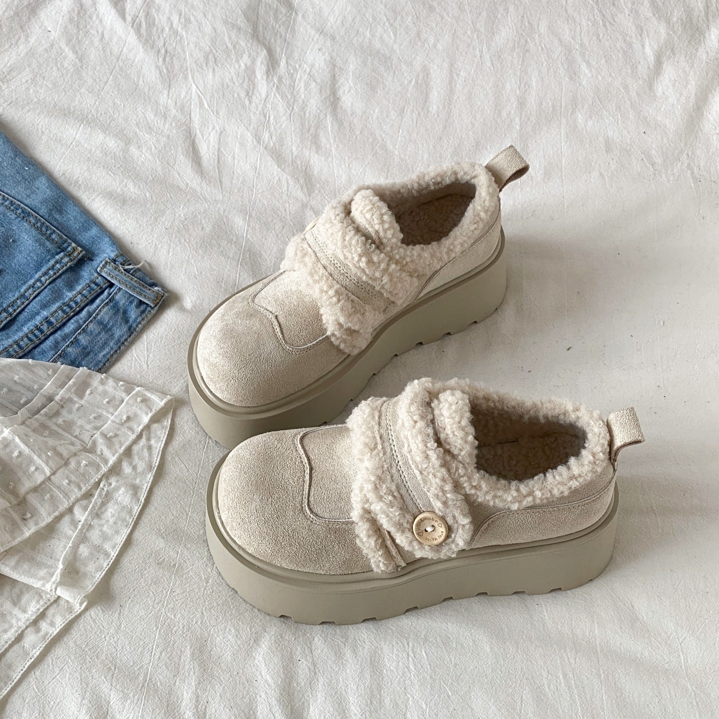白色加绒加厚复古厚底雪地棉鞋女冬2025新款外穿保暖毛毛勃肯鞋子