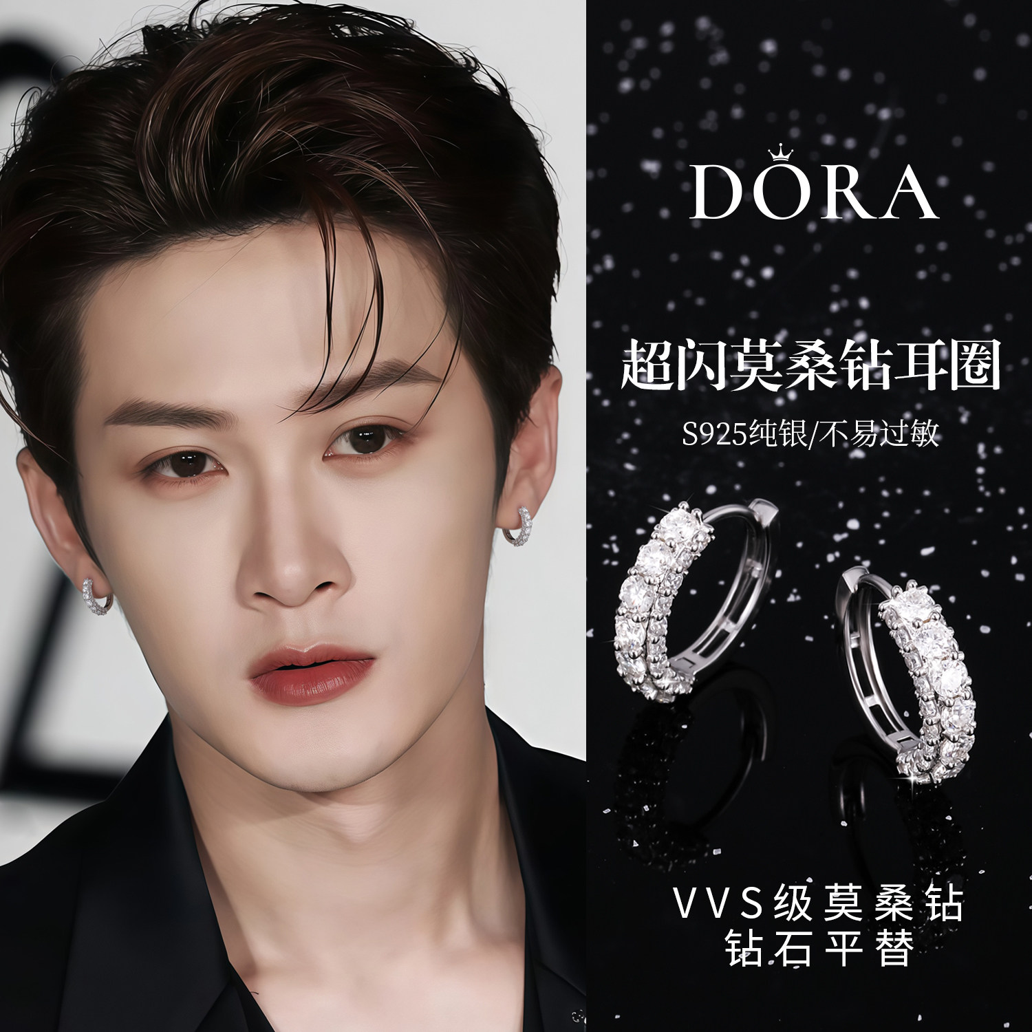 蒋奇明同款 超闪莫桑钻耳钉男款潮流痞帅S925纯银耳骨钉单只耳饰