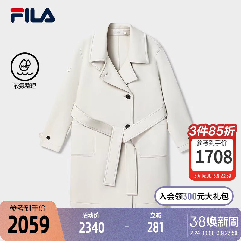FILA 斐乐官方女士针织长袖外套2025冬季新款休闲宽松中长款风衣