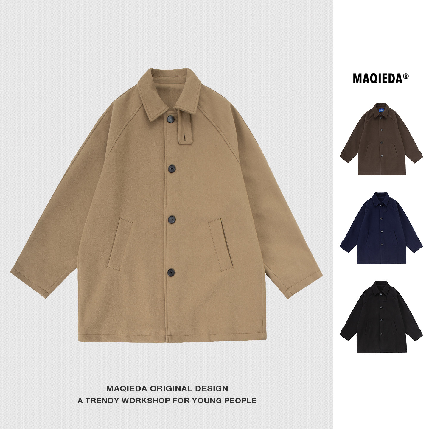 马切达冬季日系通勤男女翻领休闲风衣中长款百搭宽松大衣保暖外套