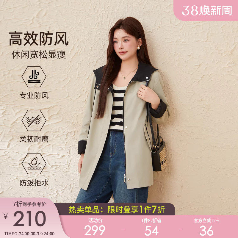 采多宝大码女装胖mm2025冬季新款中长款派克式宽松正肩风衣外套