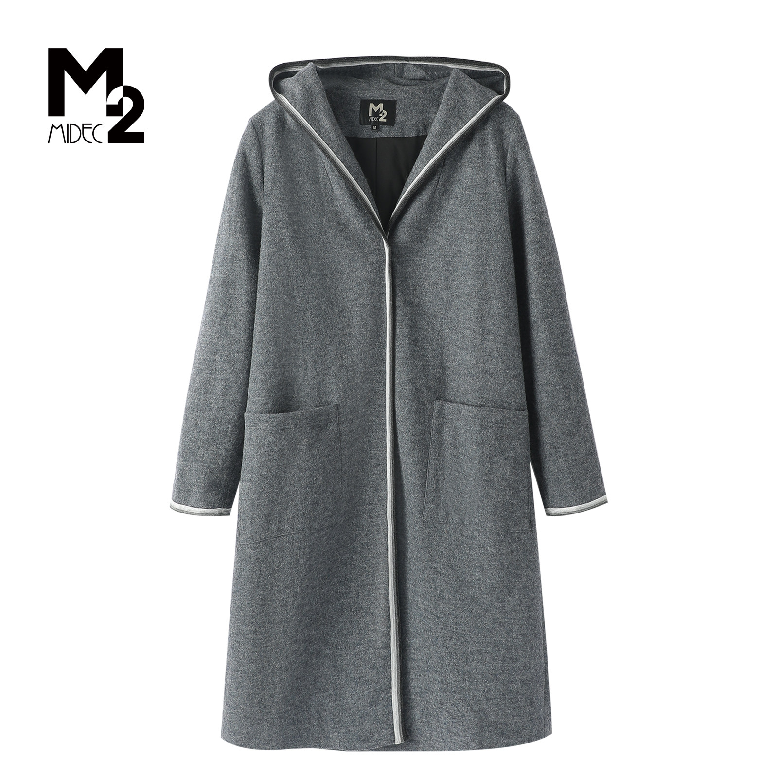 M2折扣店春秋极简风连帽中长款风衣女冬季宽松显瘦羊毛大衣外套
