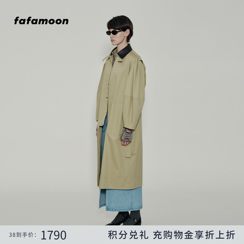 【fafamoon设计师品牌】冬季中长款宽松灯笼型后复式风衣外套女