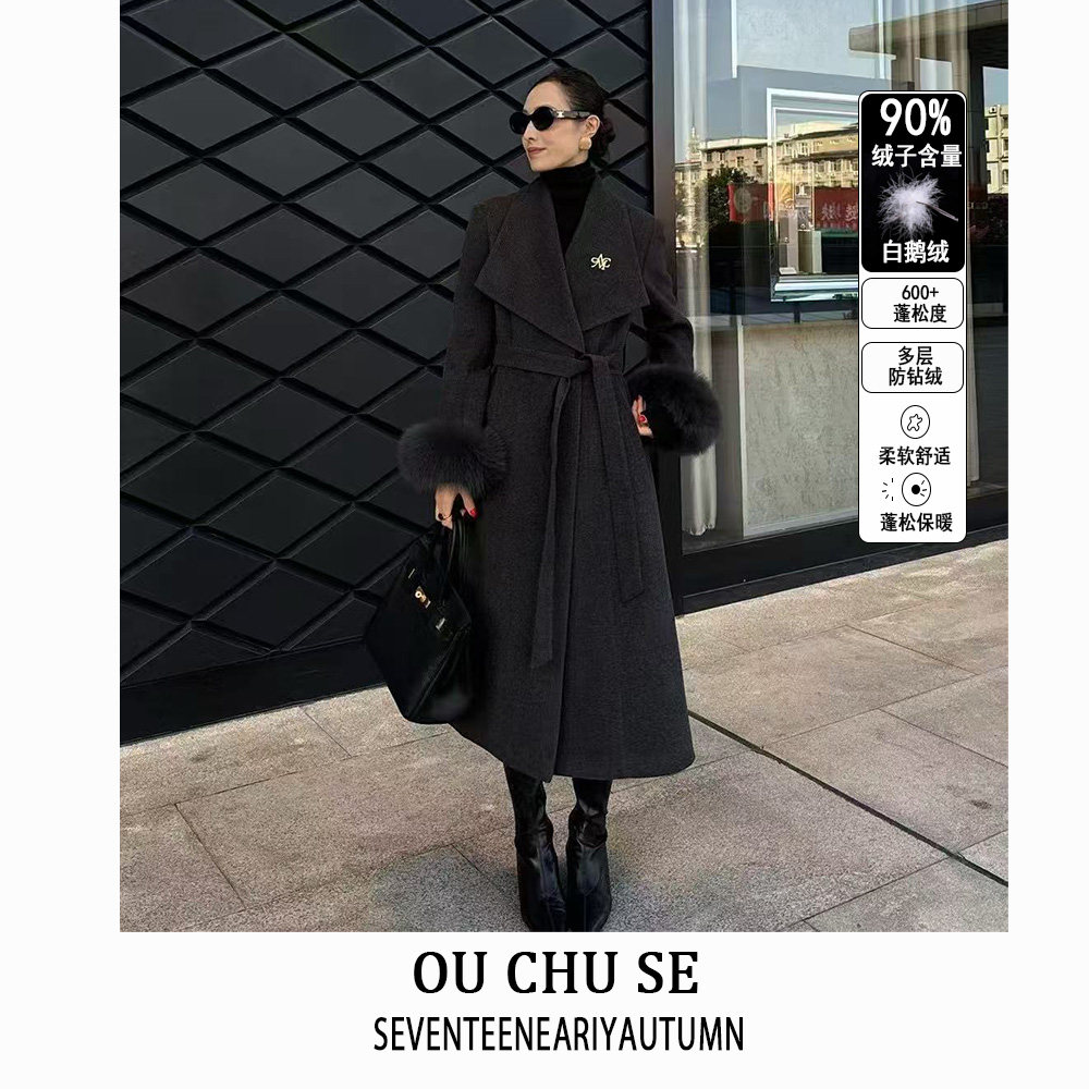 - 长款呢子外套女 秋冬
