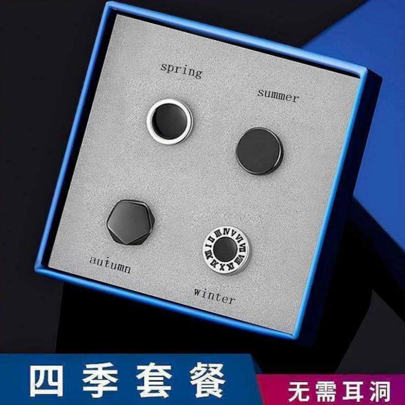 夹不痛!无耳洞男士耳钉耳夹钛钢潮嘻哈吸铁石假耳钉一周套装礼盒