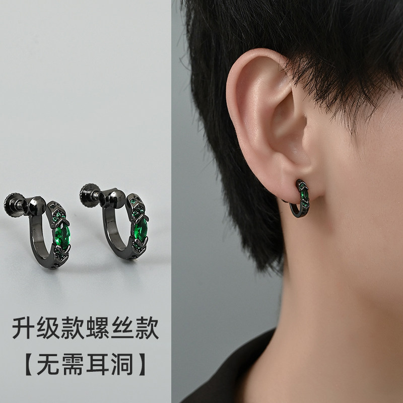 荷鲁斯之眼耳夹无耳洞男款轻奢高级感耳圈黑色绿钻耳环嘻哈耳饰品