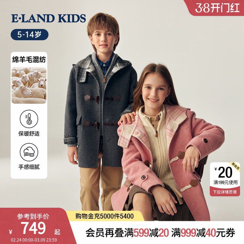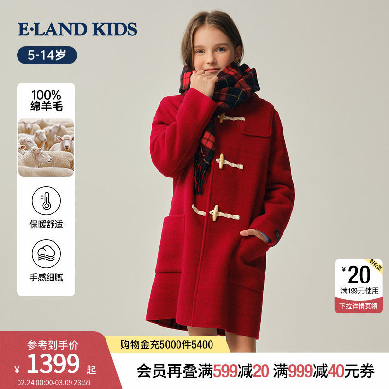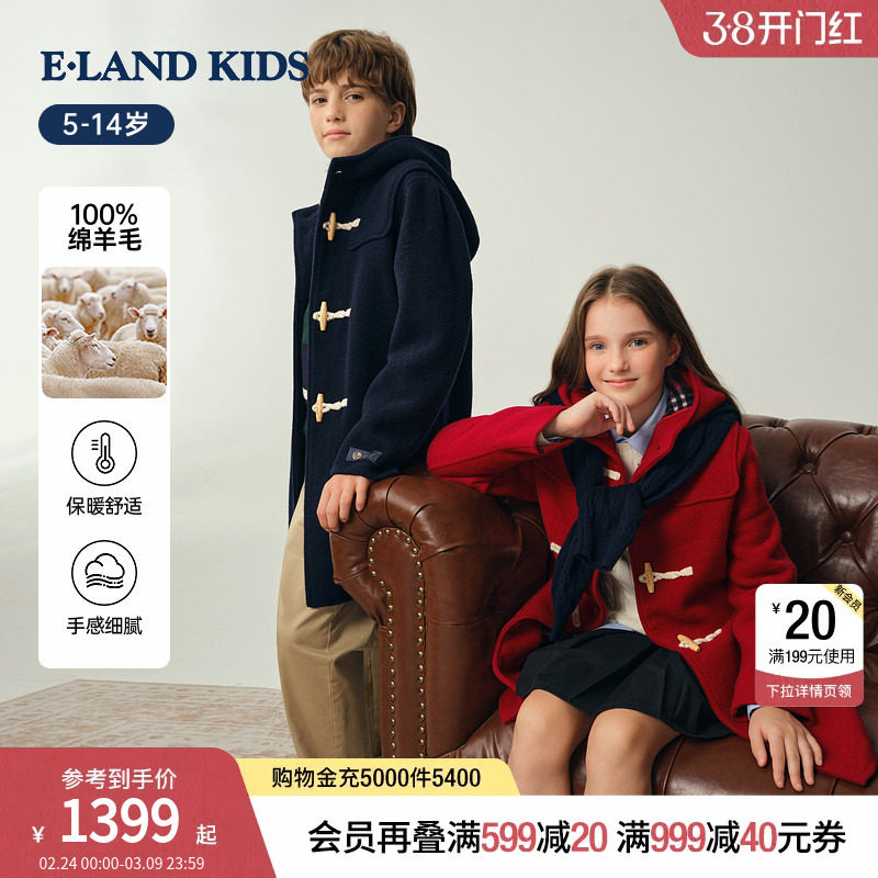 【100%绵羊毛】eland kids衣恋童装男女童毛呢大衣冬外套