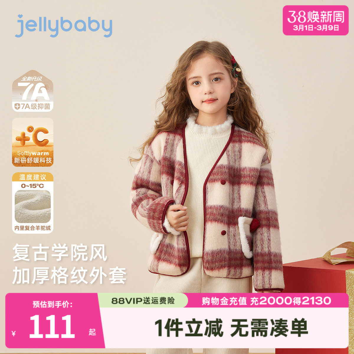女童毛呢外套宝宝格纹红色衣服儿童加厚保暖冬装大童毛呢开衫女宝