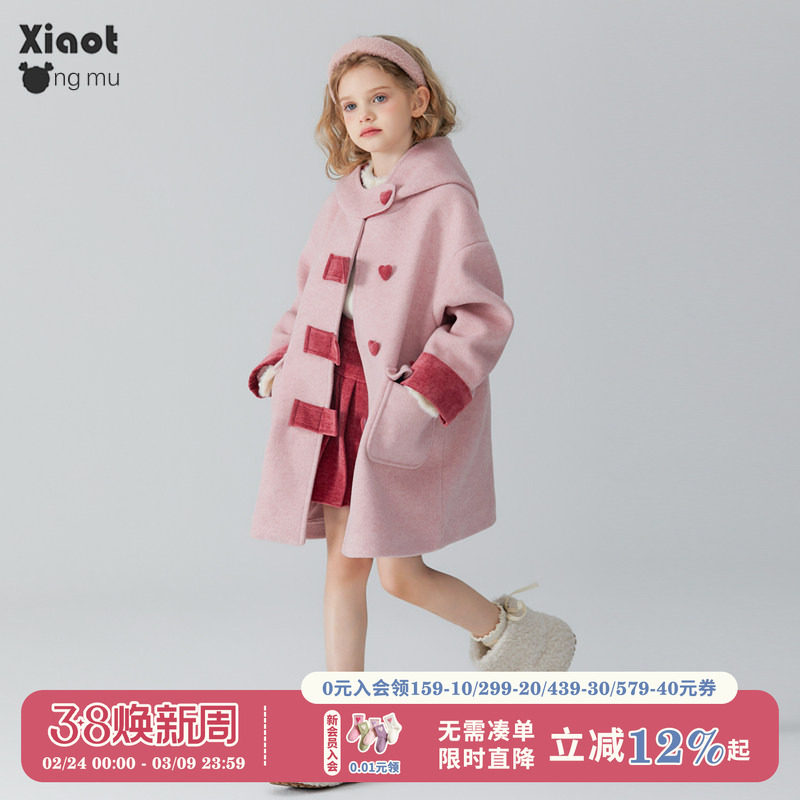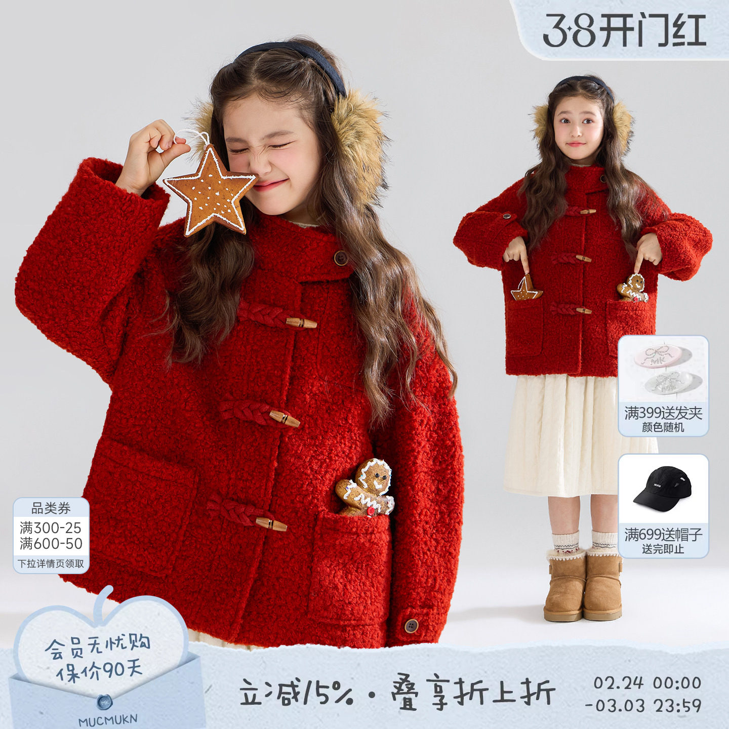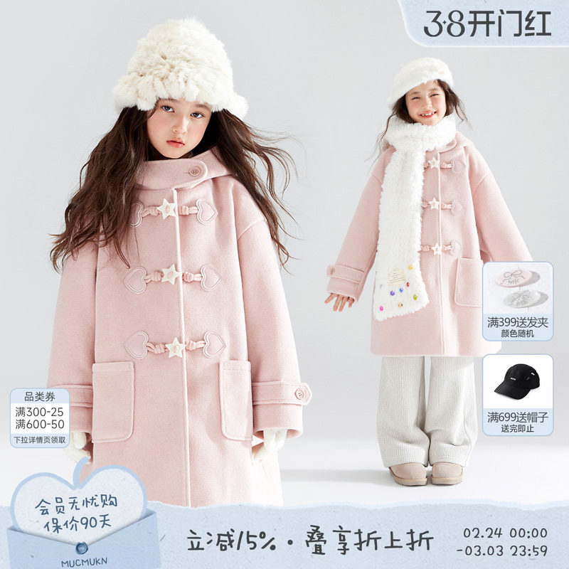 MUCMUKN【新年序曲】圈圈羊毛呢牛角扣连帽大衣保暖外套女童冬新