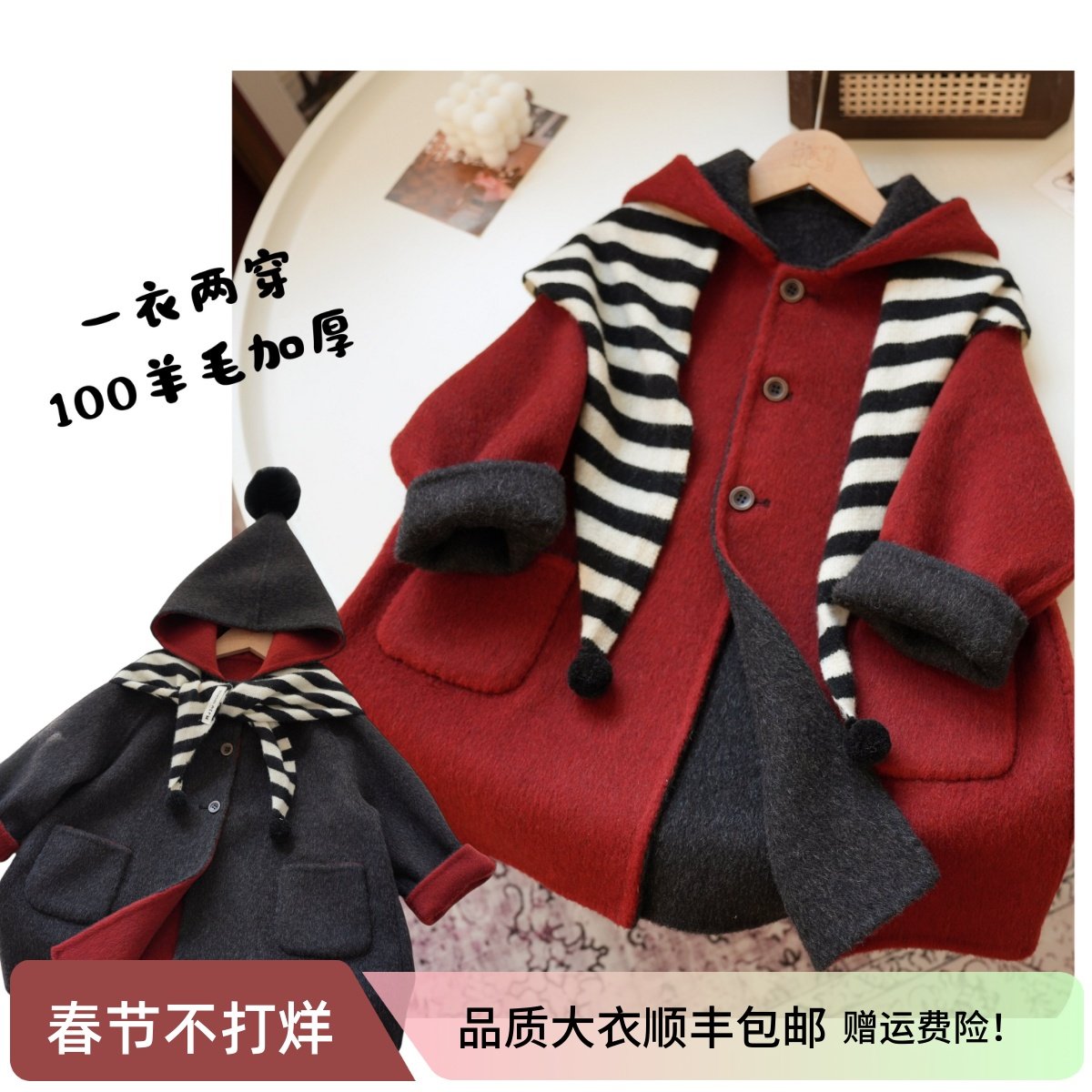 两面两穿2025秋冬新款儿童双面羊毛女童毛呢外套呢子大衣拜年服