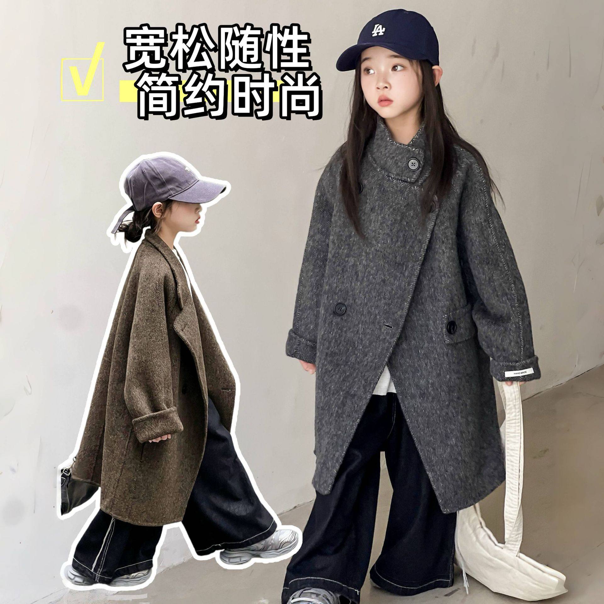 女童毛呢风衣秋冬款2025新款儿童秋装中大童韩版休闲女孩呢子大衣