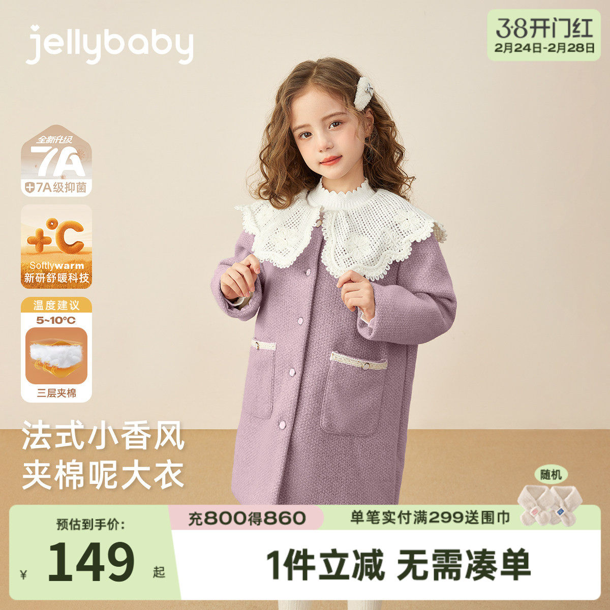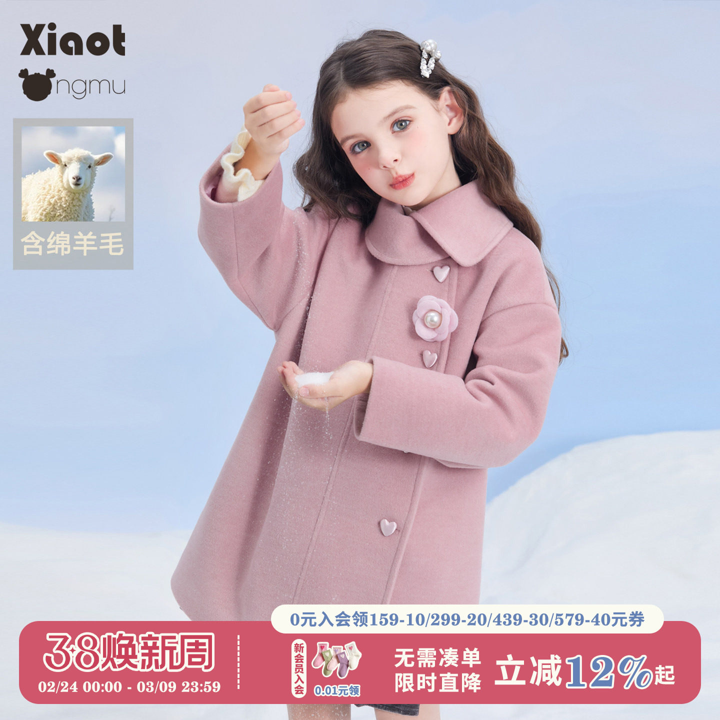小童木 千金风女童毛呢大衣2025新款夹棉加厚儿童中长款呢子外套