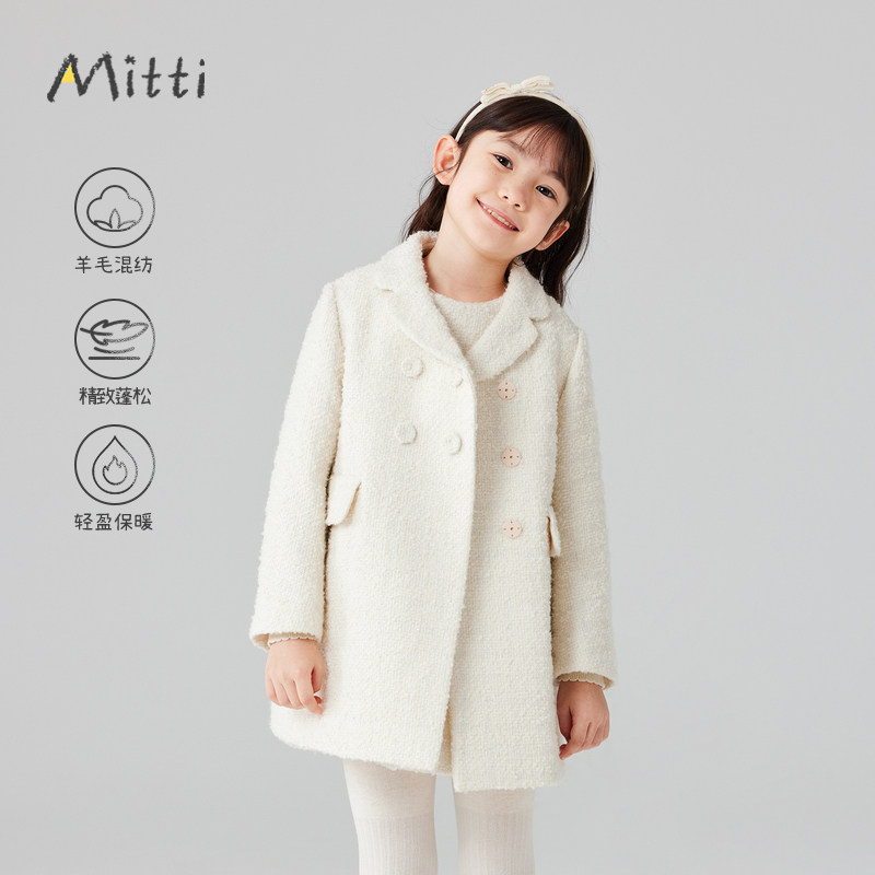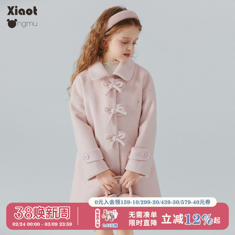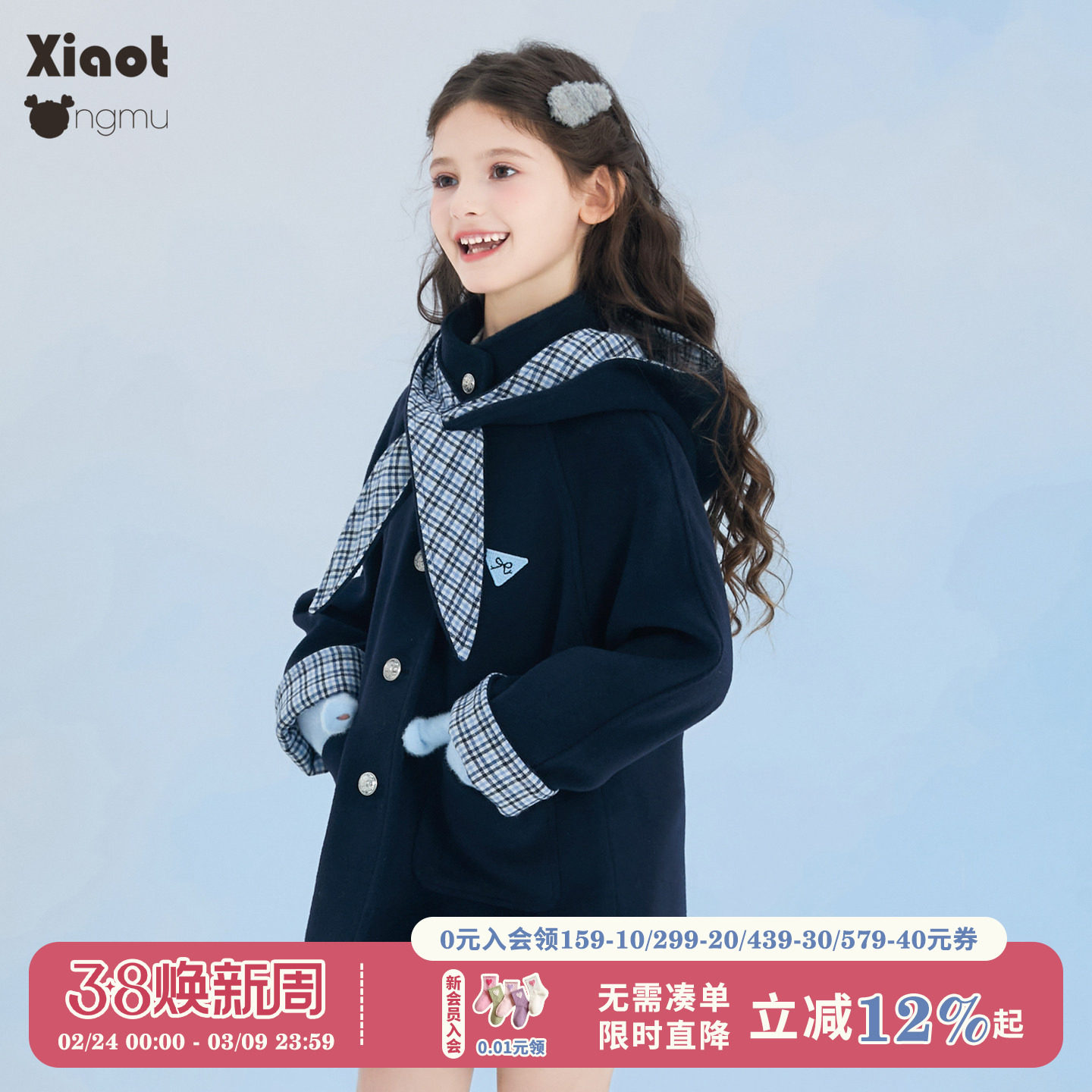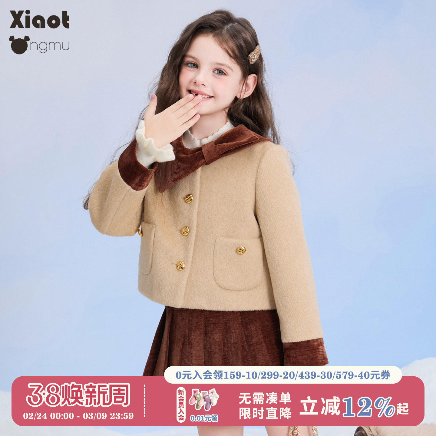 小童木 留洋千金风女童毛呢大衣冬季2025新款夹棉中大童呢子外套
