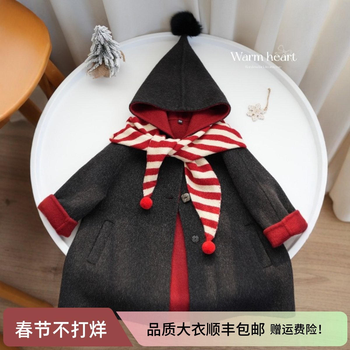 大暖自制复古亲子款100%羊毛双面羊绒手工女童毛呢外套小精灵大衣