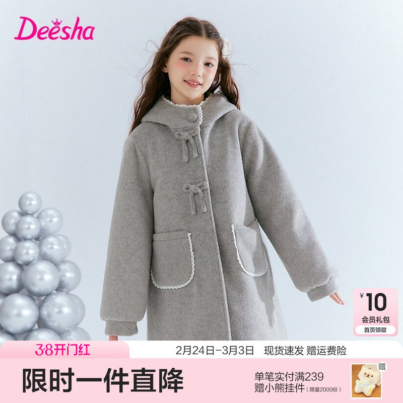 笛莎官方旗舰童装女童毛呢大衣冬季新款大童女孩儿童时尚保暖外套