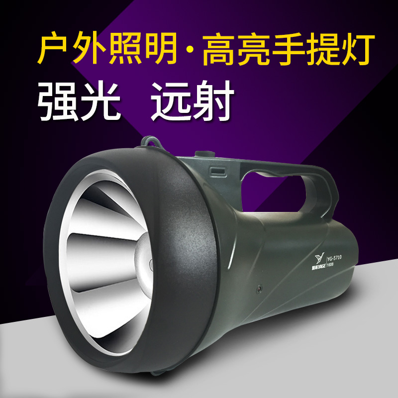 雅格手提灯led强光手电筒 探照灯可充电式高亮远射家用保安巡逻灯