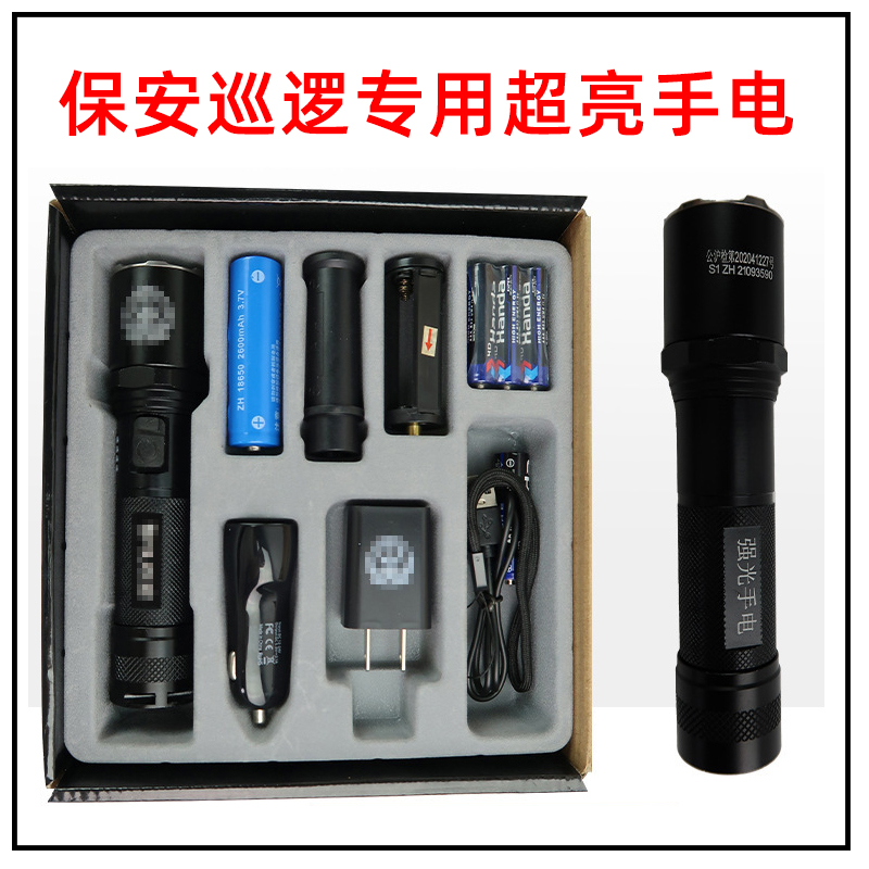 新标超强光手电筒8件套 保安巡逻充电基础便携型多功能户外求生