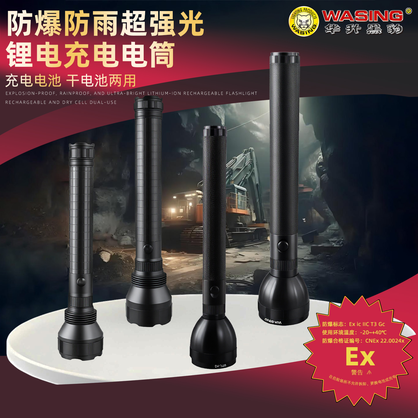 华升黑豹防爆手电筒户外保安巡逻露营充电远射超亮流明强光干电池