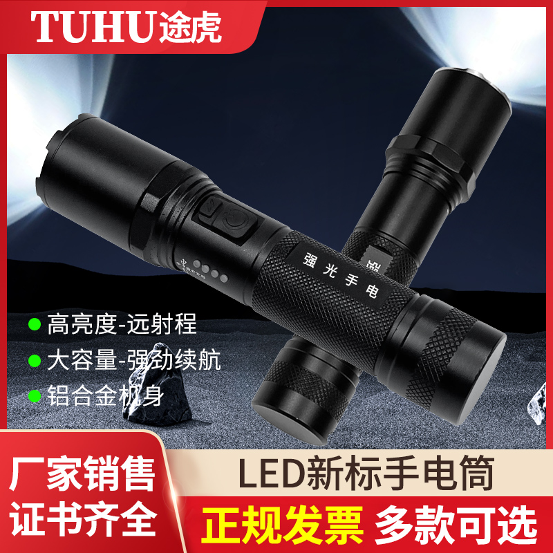 强光手电筒远射超亮可充电式耐用家用led防爆户外保安夜间巡逻灯