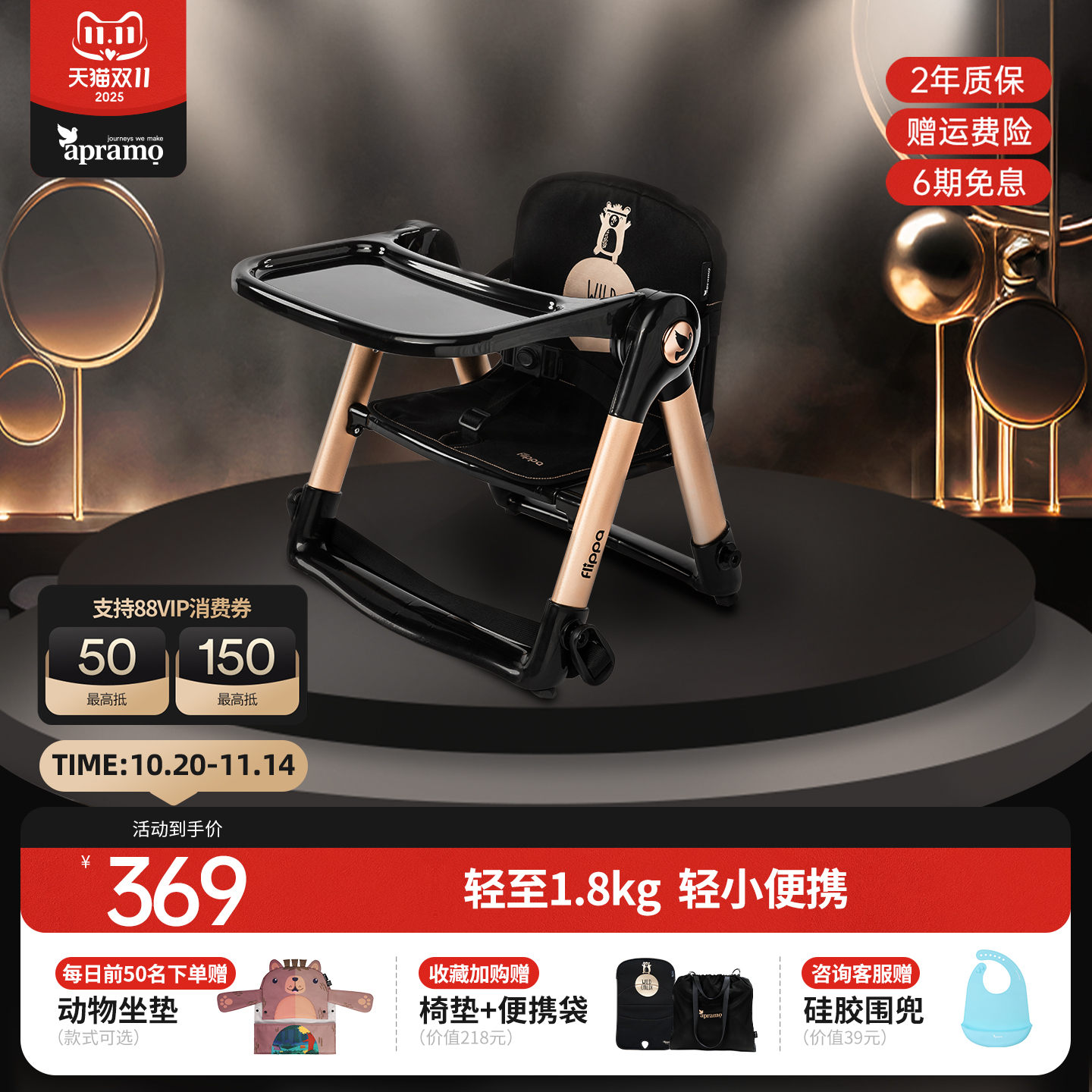 Apramo安途美爵士黑金宝宝儿童椅便携式可折叠餐椅外出吃饭露营椅