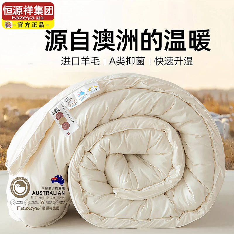 恒源祥集团澳洲进口羊毛被彩羊防螨抗菌秋冬被芯A类被子冬被加厚
