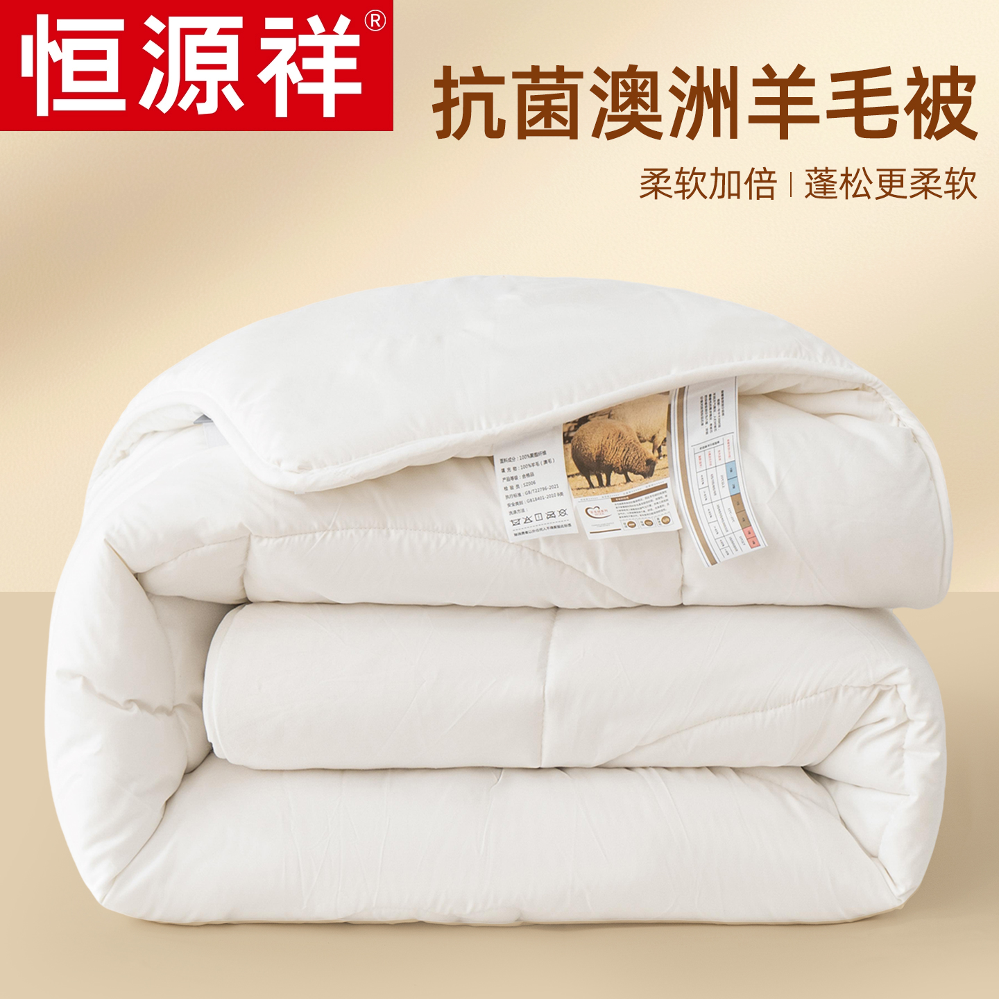 恒源祥2024新款澳洲A类抗菌100羊毛被冬被加厚保暖被芯单人春秋被