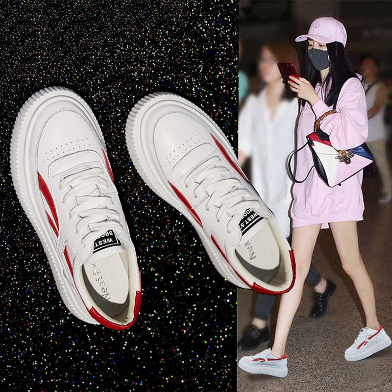 真皮小白鞋原宿老爹鞋女厚底内曾高女鞋学生运动休闲松糕底高8cm