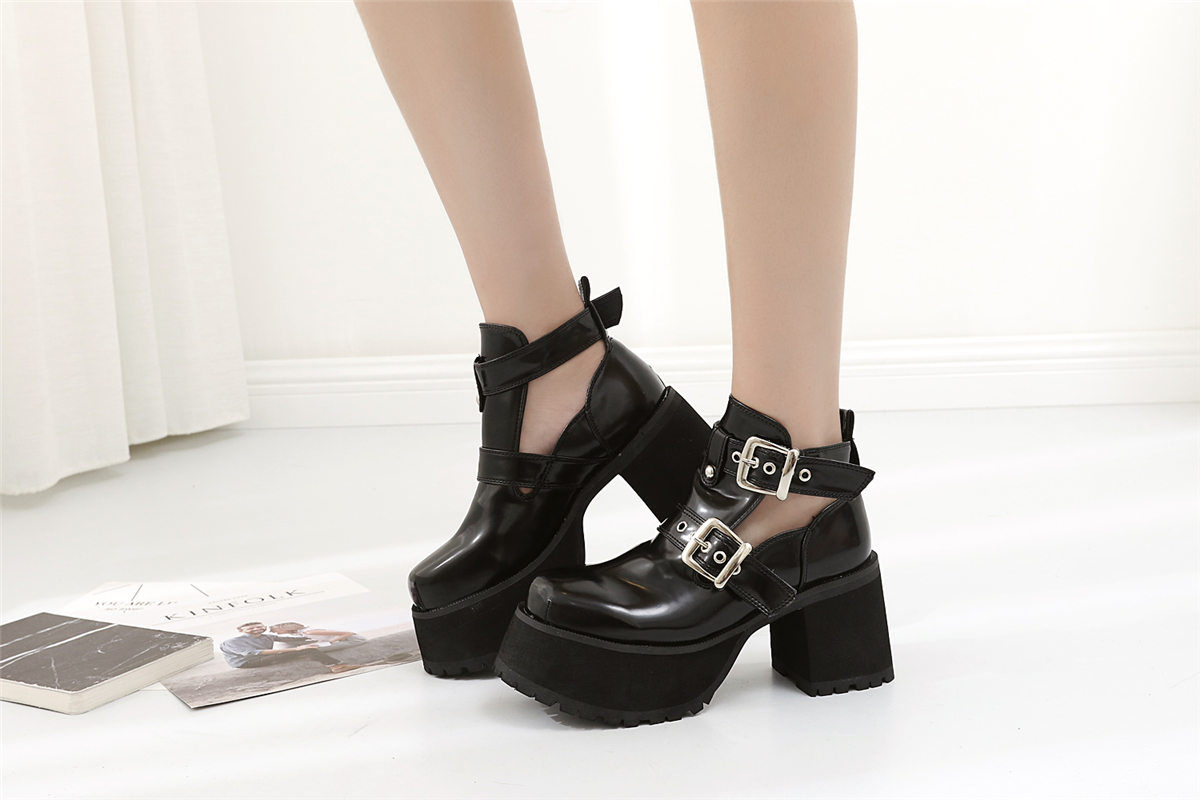 原宿机能风黑色厚底鞋暗黑洛丽塔松糕鞋哥特朋克粗跟女鞋2023新款