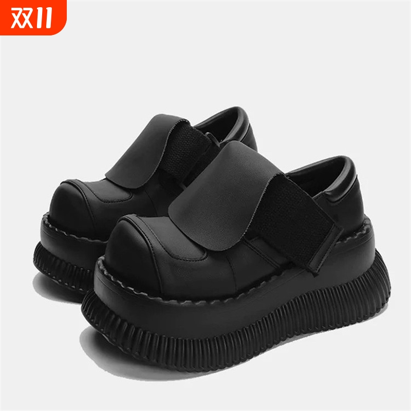 蔻孜厚底松糕鞋女2025新款原宿大头鞋亚文化小个子辣妹增高鞋圆头