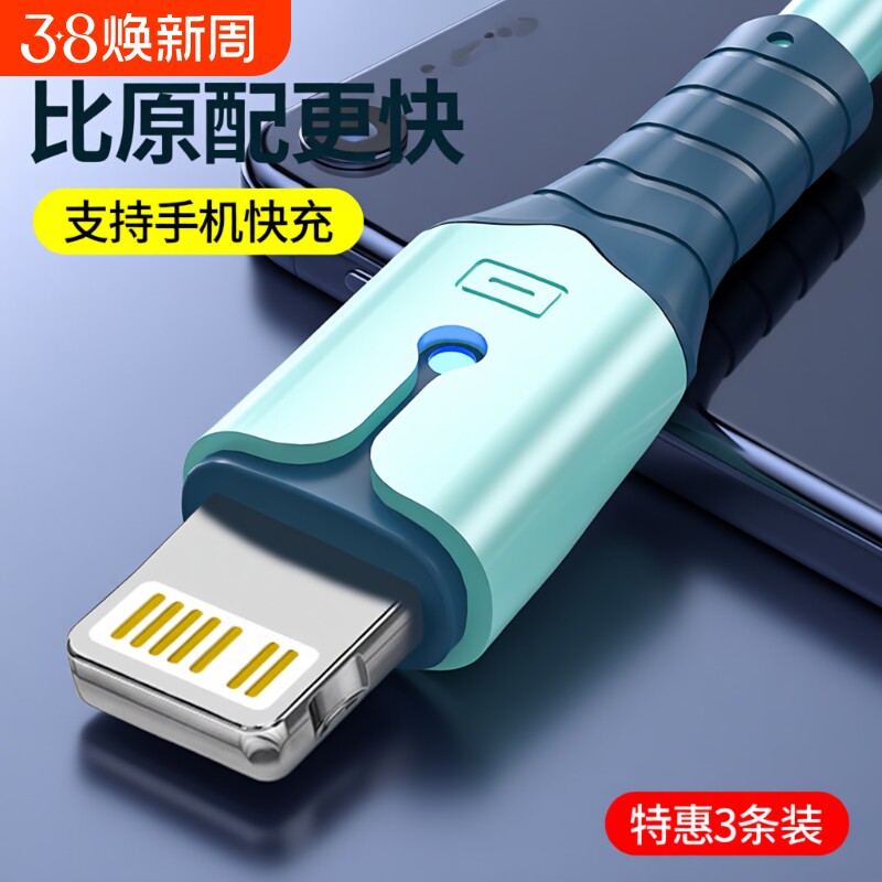 适用于苹果14数据线iPhone11快充6s手机充电线8plus加长2米7P充电器12pro闪充13短ipad冲电xr平板max单头6s线