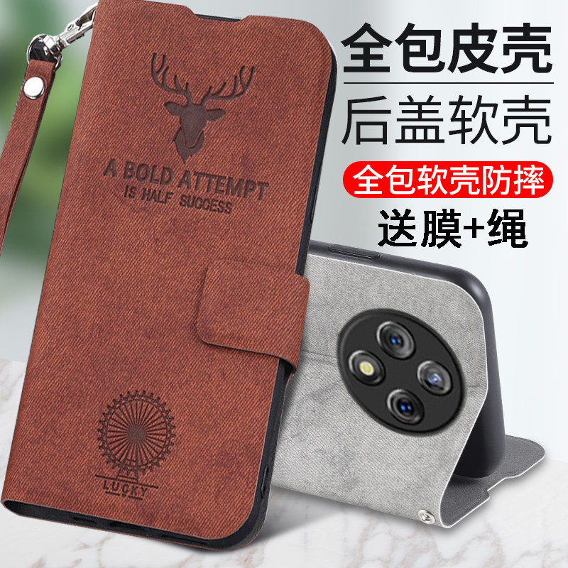 适用红米14R手机壳小米redmi14R保护5g翻盖式皮套2411DRN47C镜头全包防摔软壳男女士新款r5g鹿头布纹手绳外壳
