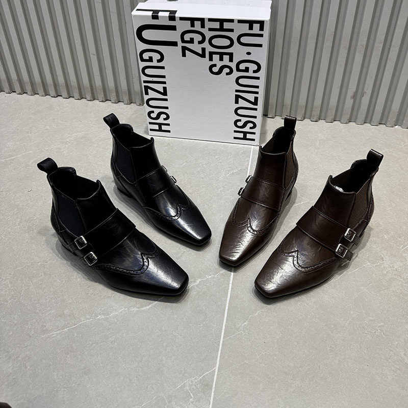 26新款复古皮带扣尖头皮带扣马丁靴女高筒显瘦切尔西靴四季998-2