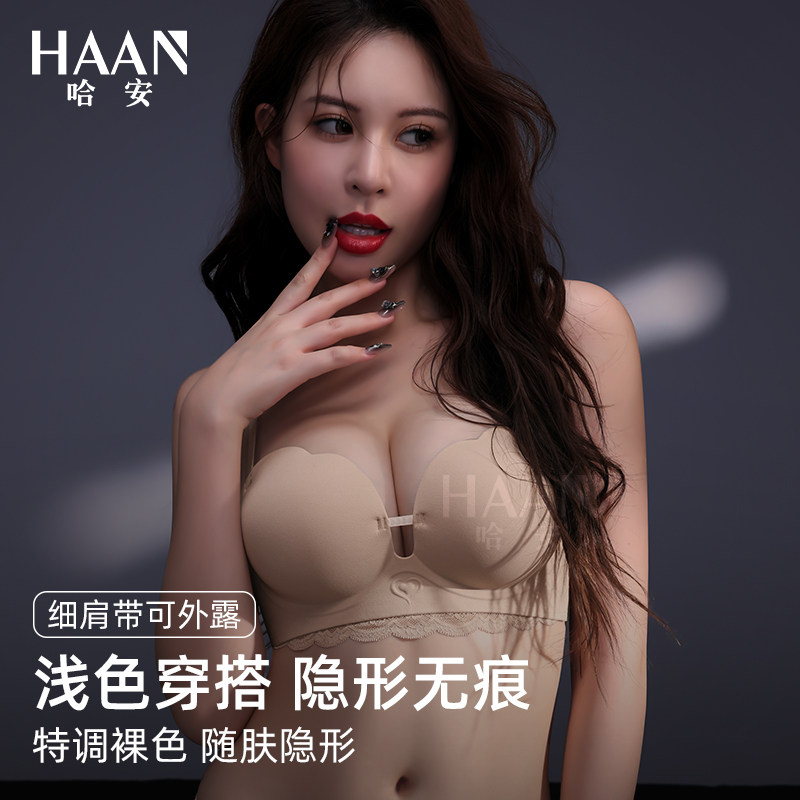 哈安超厚10厘米平小胸显大聚拢女无痕内衣字母肩带加厚显胸大文胸