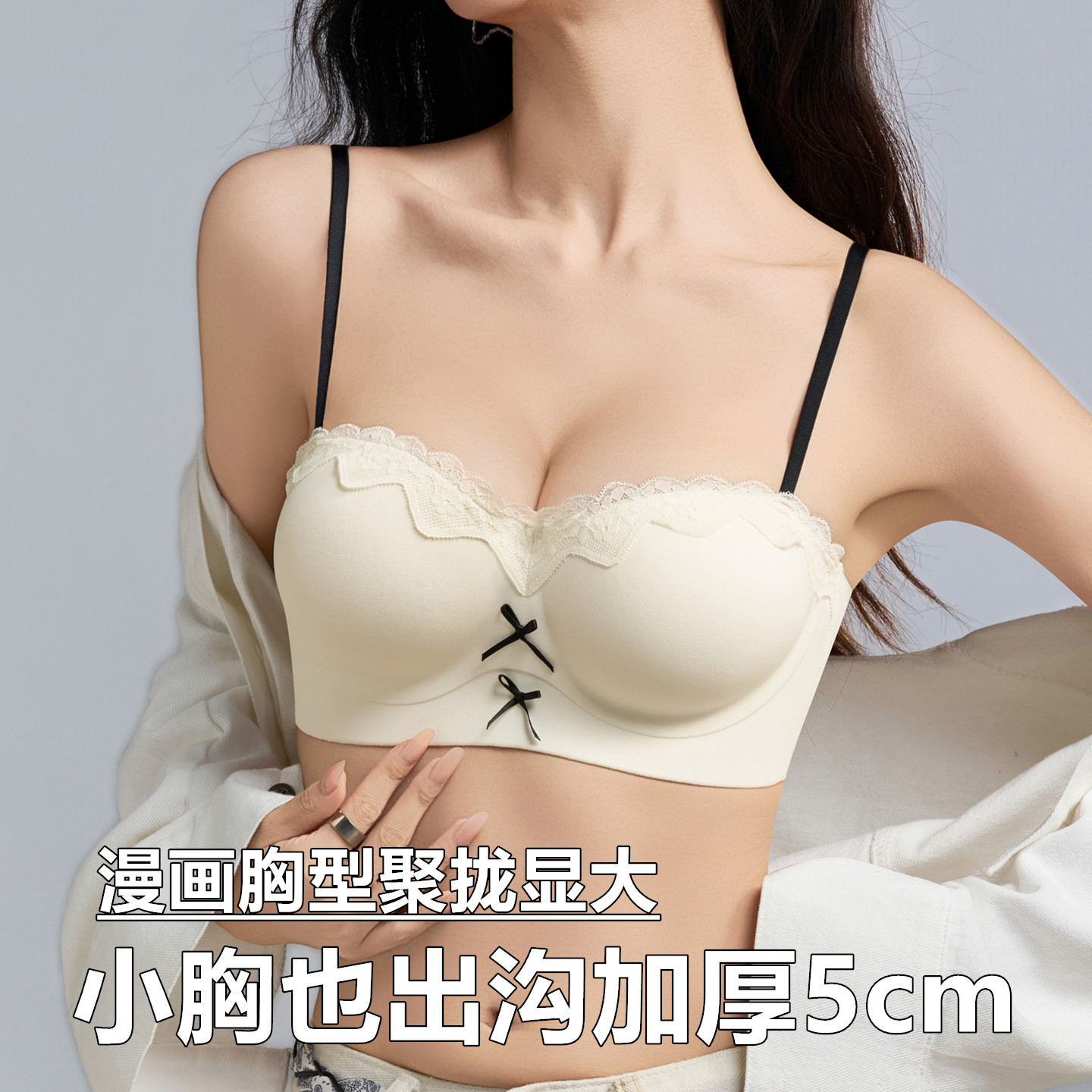 无痕超厚5cm小胸聚拢内衣女显大超厚平胸专用无钢圈细肩带文胸罩