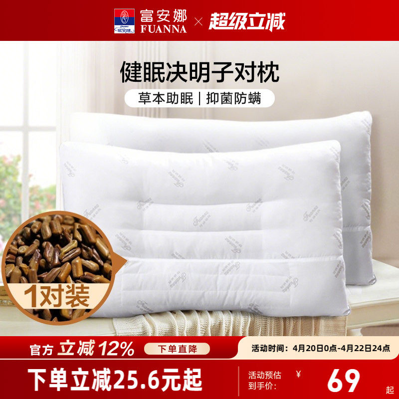 富安娜决明子枕头成人护颈椎助睡眠颈椎枕家用儿童枕头芯一对枕芯
