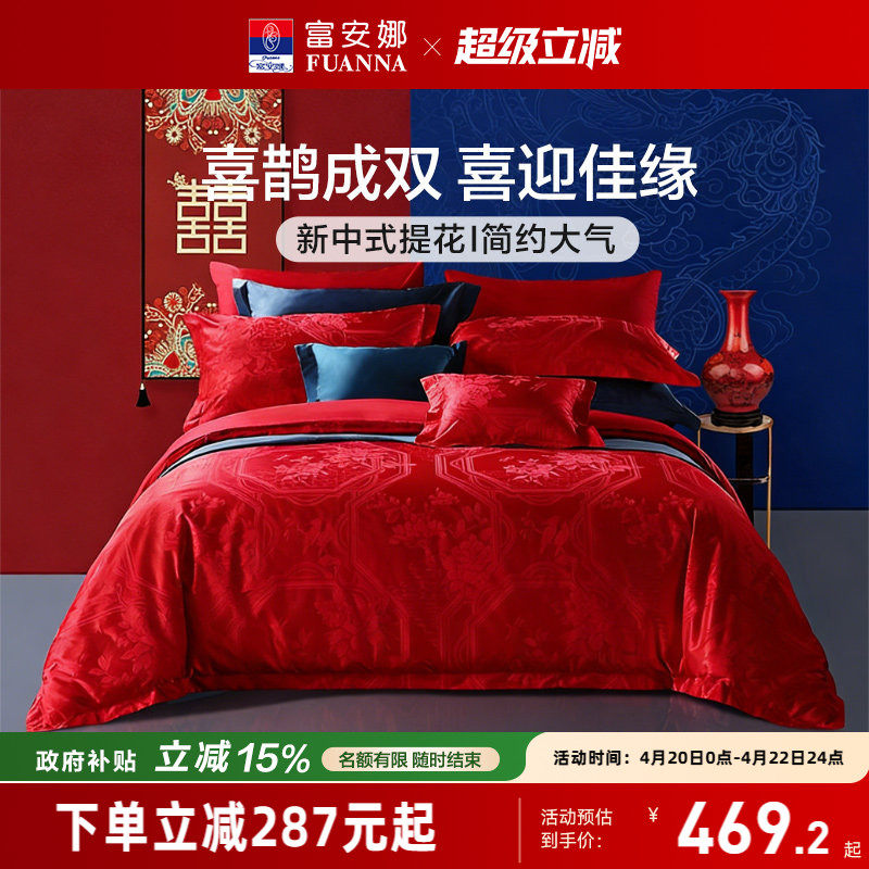 富安娜结婚六件套纯棉红色婚庆新婚龙凤陪嫁喜被婚房高级婚礼床品