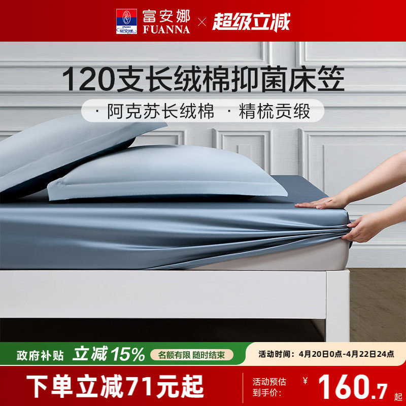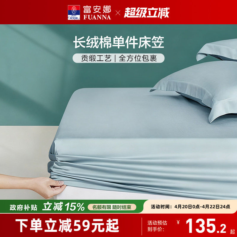 富安娜家纺120S新疆长绒棉床笠单件全棉贡缎床垫保护罩纯棉床罩