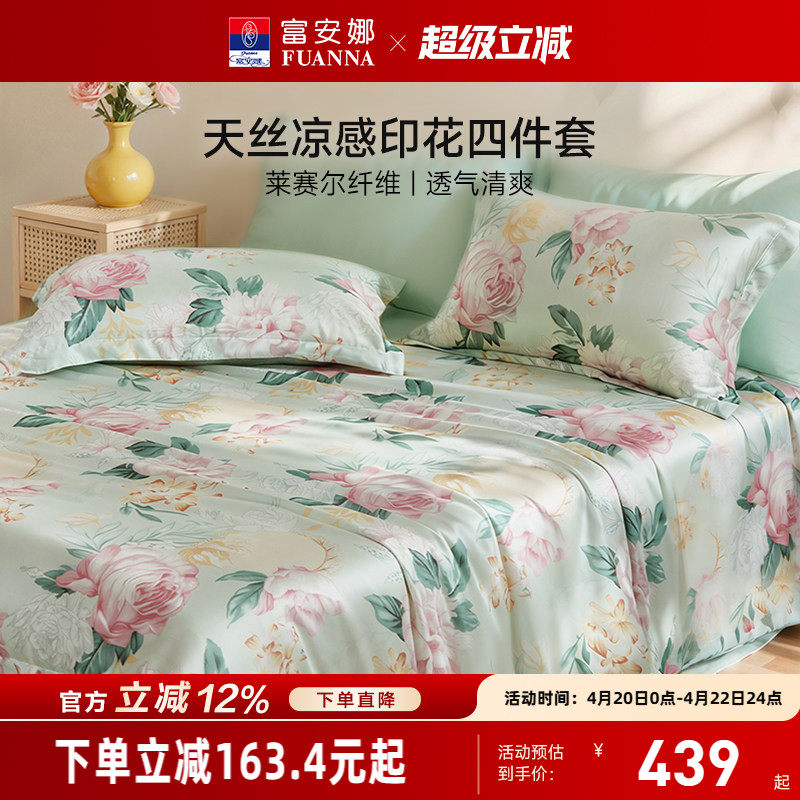 富安娜天丝四件套莱赛尔凉感被套冰丝床单被罩巨好看裸睡床上用品